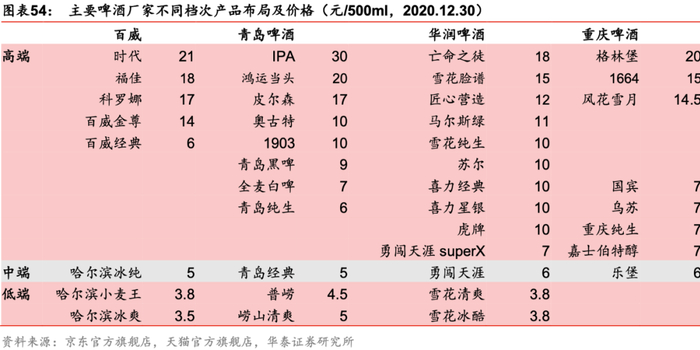 1)罐装啤酒成本低、利润率高:罐装酒的开单价格较瓶装啤酒更高,且由于其生产成本、运输费用、市场费用更低,利润率高于普通瓶装。