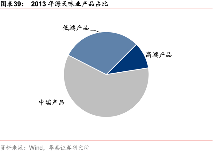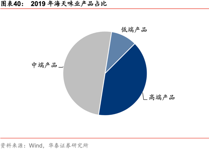疫情进一步催化高端健康产品需求,龙头争相布局。我们认为,消费升级和健康需求将推动高端品类持续发展,中高端酱油、食醋、料酒、蚝油、复合调味品将保持高景气。为迎合高端品类发展趋势,海天味业、中炬高新等龙头亦陆续推出相关高端产品,并衍生出淡盐、有机等细分需求的高端产品,打造品牌效应,并保持结构提升。以海天味业为例,公司高、中、低产品的占比由2013年的1:6:3改善至2019年的4:5:1。