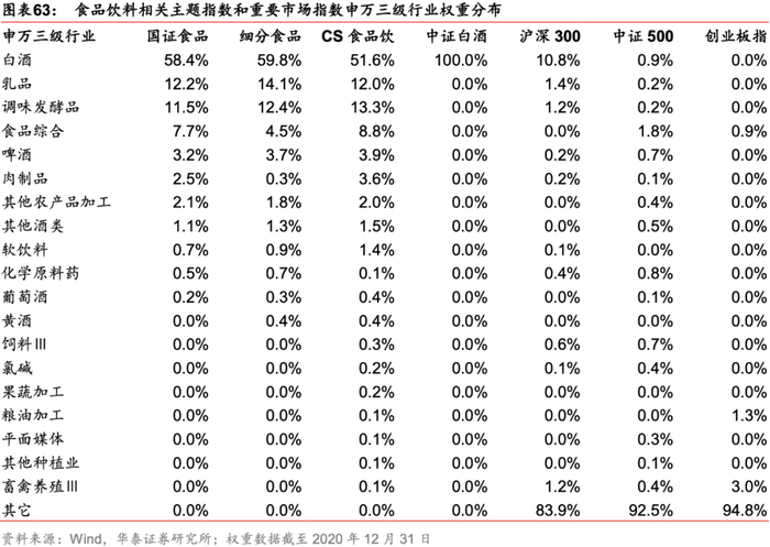 国证食品饮料行业指数在白酒行业权重占比过半,其余细分行业亦有覆盖