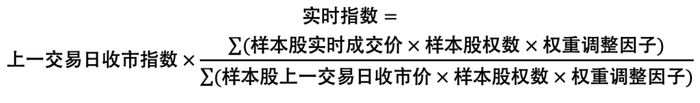 其中样本股权数为样本的自由流通量,分子和分母分别为样本股经过权重调整后的实时和上一交易日收市自由流通市值。设置权重调整因子,使单只样本股权重不超过15%。权重调整因子每年调整2次,调整时间为样本股定期调整实施日,以权重调整前倒数第5个交易日的收盘调整市值来计算权重调整因子。