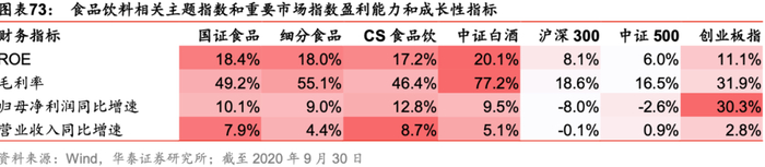 无论是纵向还是横向对比,国证食品饮料行业指数在上述各项财务指标上均有良好表现。食品饮料行业优质赛道估值不便宜,但高估值有盈利能力和成长性支撑。