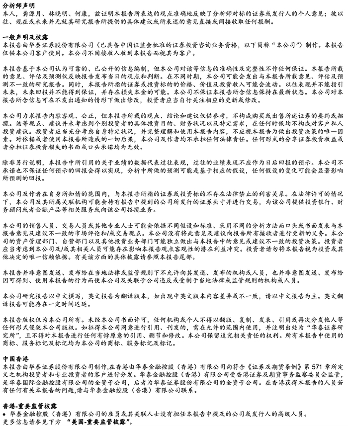 本公众号研究报告有关内容摘编自已经发布的研究报告的,若因对报告的摘编而产生歧义,应以报告发布当日的完整内容为准。如需了解详细内容,请具体参见华泰证券所发布的完整版报告。