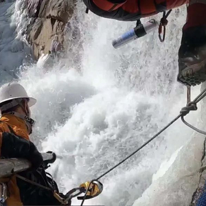 救援队在瀑布下方进行搜寻时,瀑布顶端不断有冰块坠落,“砸得我们的头盔噼里啪啦响”。进行搜寻时,甚至有搜救队员落水,“因为都是浮冰,人踩在浮冰上,轰地一下就掉下去了,危险性非常大”。