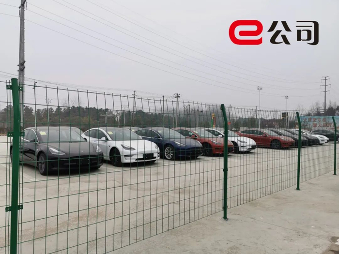 合肥特斯拉中心院内,多辆已出售的Model3正在静候交付