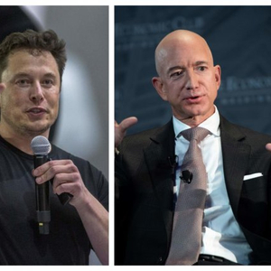 马斯克与贝佐斯。(法新社)