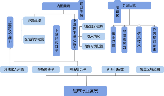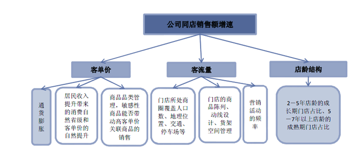 供应链效率环发挥作用的关键在于规模的可持续快速增长,其动力一方面在于快速外延扩张,尤其是通过大卖场业态来快速提升规模和市场份额;另一方面来自于内生增长,包括客单价提升、客流量增长、精细化管理带来的较高可比门店销售增速。而无论是外延扩张还是内生增长,其根本动力还是源于高效的供应链管理能力。