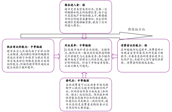 在价值链盈利模式下,超市基本不向供应商收取额外的价外费用,而是靠整合供应链来创造利润。