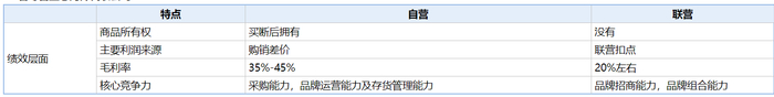 自营依靠买断产品或者开发自有品牌,依靠购销差价盈利,虽然能获得较高的利润,但存在较大的收入弹性和价格弹性缺陷,风险较高;