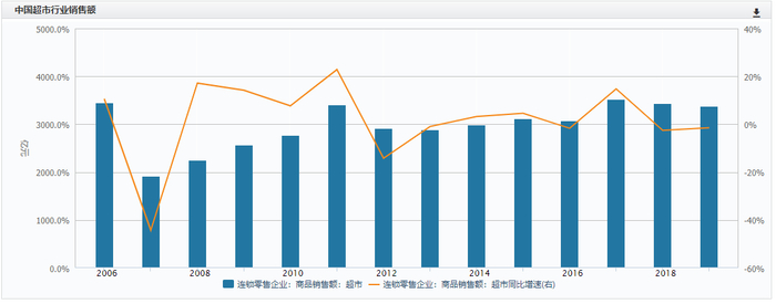 中国超市行业的销售额近十年,从结构上来看,没有发生明显的结构上的变化。
