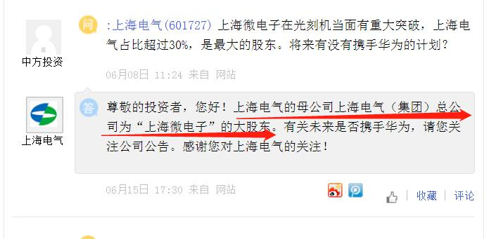 该消息发布后,A股上市公司上海电气和张江高科6月5日当天即涨停。不过,上海电气在互动平台上回答投资者关于国产光刻机生产商有隶属关系时,上海电气表示上海电气的母公司上海电气(集团)总公司为“上海微电子”的大股东,间接否认了上市公司与光刻机业务的关联。
