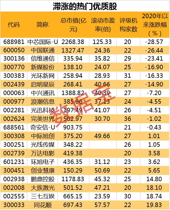 截至1月7日收盘,上述20家公司中,中芯国际、中国联通和信维通信的股价自去年以来跌幅均超20%(次新股不含上市首日涨幅)。