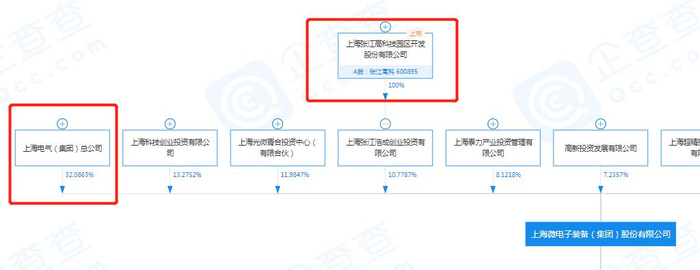 而上海电气(集团)下承担光刻机研发突破任务的是上海微电子装备集团,企查查数据显示,前者持有后者32%的股份,是公司最大股东。同时,张江高科通过持有张江浩成持有上海微电子10.78%股份。早盘,张江高科也跟随异动,盘中涨幅一度近7%。