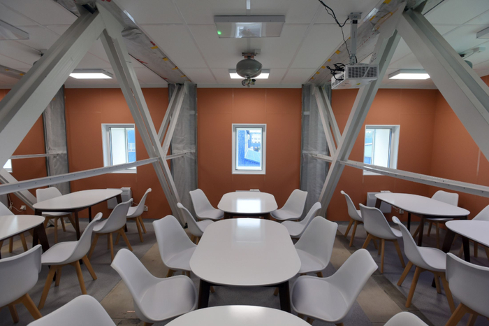 “东方-2”站建筑内部的科考队员餐厅,测试组装时拍摄。