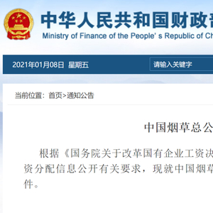 1月8日,财政部经济建设司公布中国烟草总公司2019年度工资总额情况,数据显示,中国烟草总公司2019年度在岗职工年平均人数51.6万人,在岗职工年平均工资为18.67万元。