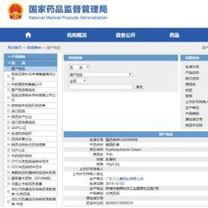 记者查询国家药品监督管理局发现,目前国产药品中,仅有广东人人康药业有限公司生产的批准文号为H20040088的千白氢醌乳膏。原料药则有广东人人康药业有限公司、浙江孚诺医药股份有限公司两家拥有批准文号。