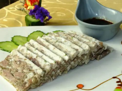 马鞍山的霍里羊糕制作已经有100多年的历史了。用的是本地山羊,去皮、清洗后,高温蒸煮5-6个小时,羊肉七八成熟的时候,再用小火闷,剔骨,闷到汤中无水,上箱,压板后风冻。羊肉骨头等继续用火熬成油状。羊糕定型后,取下压板浇老油揭面子,过夜冷冻。