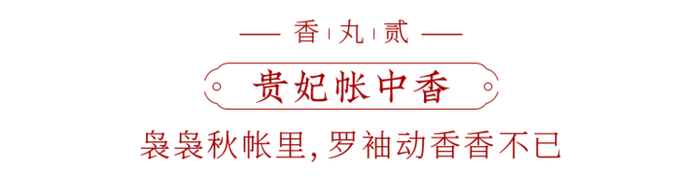 贵妃帐中香金箔香丸,以杨贵妃入睡时爱用的帏中衙香为基础,加入玫瑰、佛手等香材,改良而来。