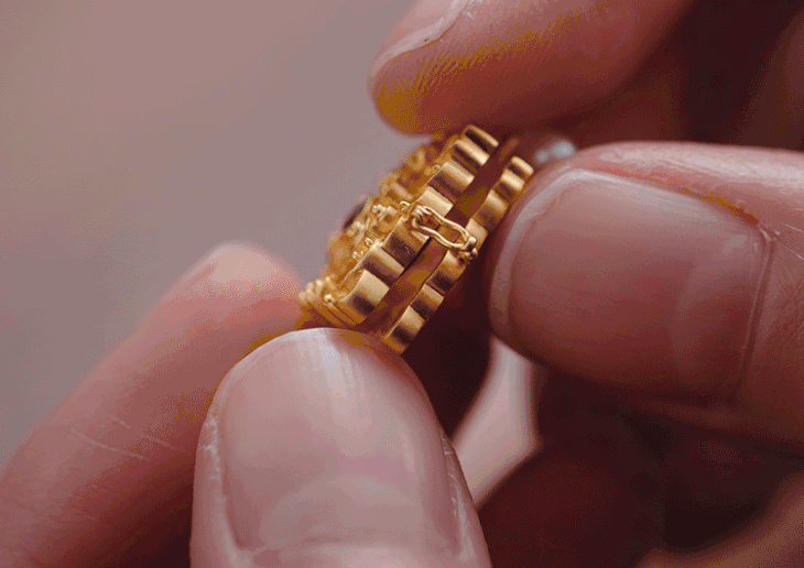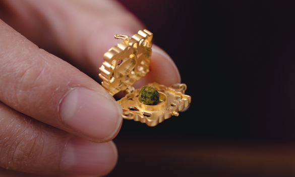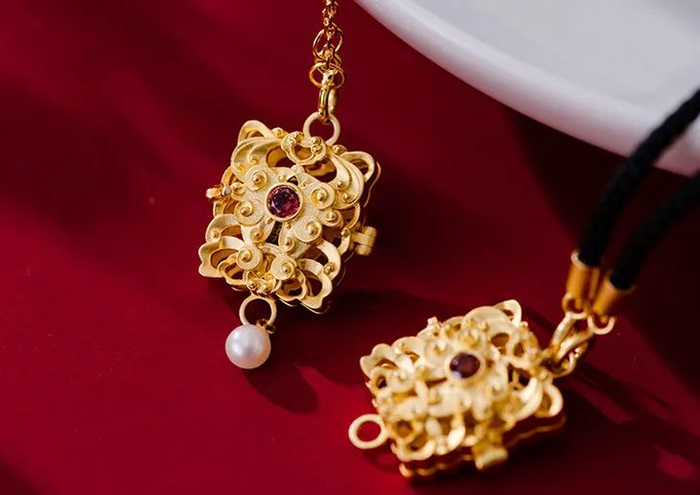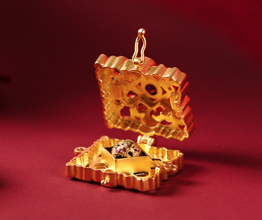 随后建模、浇筑、执模、上砂、电镀上金,再用一个小零件,连接起来。如果香囊内的空间估算错误,亦要放弃重来。