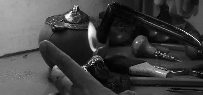 手艺人要先将银香囊分为毫米大小的正面与反面,分别镂空雕刻纹饰;这可是个细致活,稍有不慎,一切都要放弃重来。