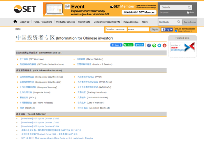 图2:泰国证券交易所(SET)官网的“中国投资者专区”