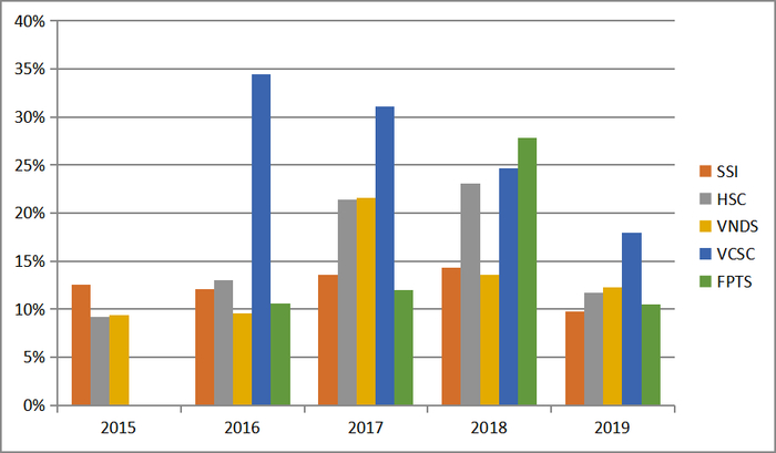 图4:越南市场份额居前券商的ROE表现(2015-2019)
