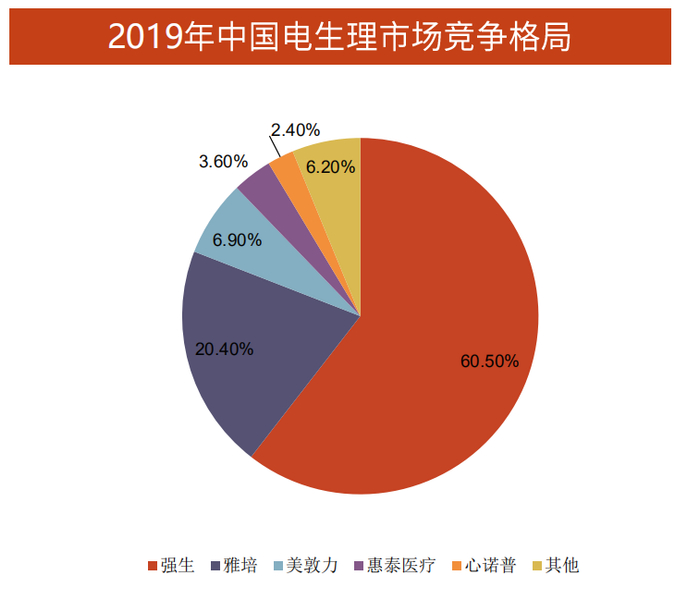 在竞争格局方面,国产电生理企业由于起步较晚于外资厂商,且整体技术落后于强生、波士顿、美敦力等跨国企业,导致高端产品仍以外资品牌为主。2019 年中国电生理市场,第一的强生市场份额占据60.5%,第二的雅培占据20.4%,国产厂商总体市场份额不超过13%