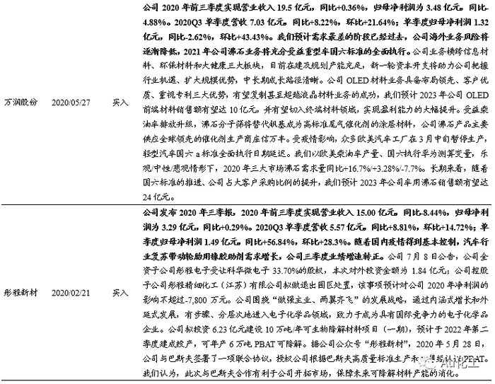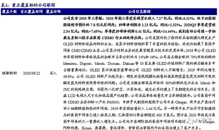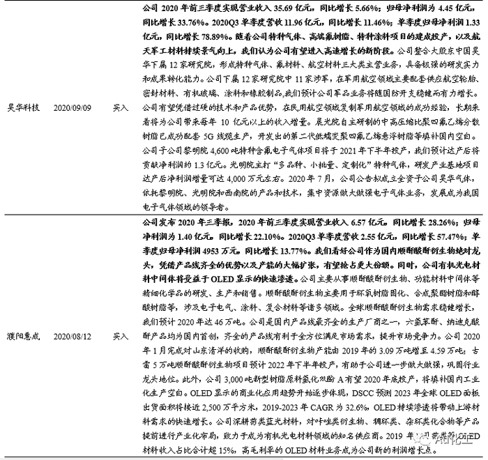 1.1、覆盖个股跟踪:继续看好昊华科技、瑞联新材、万润股份等
