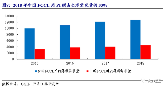 随着FPC等电子制造业向中国大陆转移,叠加5G通信、柔性显示及高速轨道交通等领域的快速发展,大陆地区高性能PI薄膜的市场需求不断增加,国产化需求迫切。在FPC领域,PI薄膜经加工制成FCCL后用于FPC制造,2017年全球FCCL对于PI薄膜的需求从2011年的9000吨增长至12,500吨,复合增速5.6%。根据GGII数据,2018年全球FCCL用PI膜的需求量达到13,750吨,中国的FCCL用PI膜需求量达到4,500吨,占比为33%,是PI薄膜最主要的应用领域。在柔性显示领域,PI薄膜是柔性OLED显示的关键,柔性基板需求增速快,带动PI浆料市场规模提升。据中国产业信息网,柔性基底OLED在2019年的产能约为1148万平方米,占比62.0%,超过了刚性基底OLED,预计2023年柔性基底OLED面板年产能将增长至1969万平方米左右,相比2019年增长71.5%。在高速轨道交通领域,耐电晕PI薄膜是大功率电力机车的高等级绝缘系统的关键材料。据《铁道统计公报》,中国的高铁运营里程全球排名第一,占比超过60%,截至2019年底,高铁运营里程数达到3.5万公里,动车组机车拥有量达到2.9万辆,预计到2020年底,中国铁路运营里程将达到14.3万公里,其中高速铁路将达到3.7万公里,将有效带动耐电晕PI薄膜的市场需求。2010年以前,中国大陆地区高性能PI薄膜的产业化处于空白期,同时国外PI薄膜厂商实行严格的技术封锁,我国高性能PI薄膜严重依赖进口。近年来,在下游市场和国家政策推动下,高性能PI薄膜技术突破及国产化需求迫切。