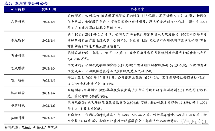 1.2、重点公司公告:裕兴股份预计2020年实现归母净利润1.51亿元到1.70亿元,同比增加60%到80%