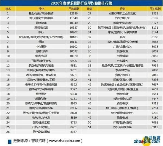 人均年工资18.7万是个什么概念?不妨对比下智联招聘统计的全国51个行业的薪资情况。