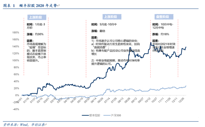 一、2020年回顾:顺丰控股2020年全年涨幅139%。