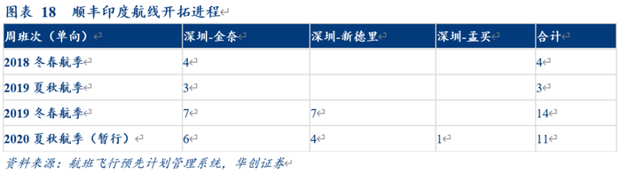 根据2019冬春航季时刻表,顺丰深圳-金奈航线现为每周7班,此外顺丰开通了“深圳-新德里”航线,为在印度的第二条货运航线,初期每周2个航班,之后每周7班,采用747执飞,与深圳-金奈合计计算,每周最大可为客户提供单向1400吨运力支持。