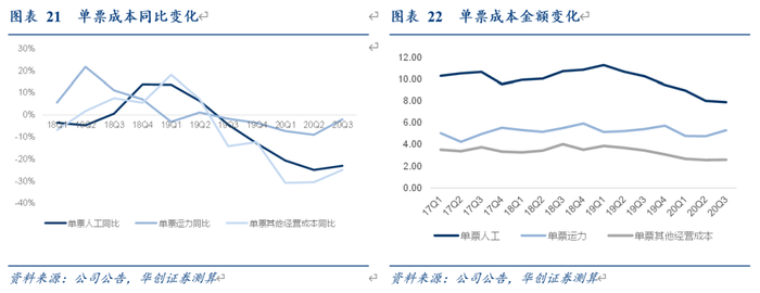 单票其他经营成本:进入2020年以来降幅超过30%。
