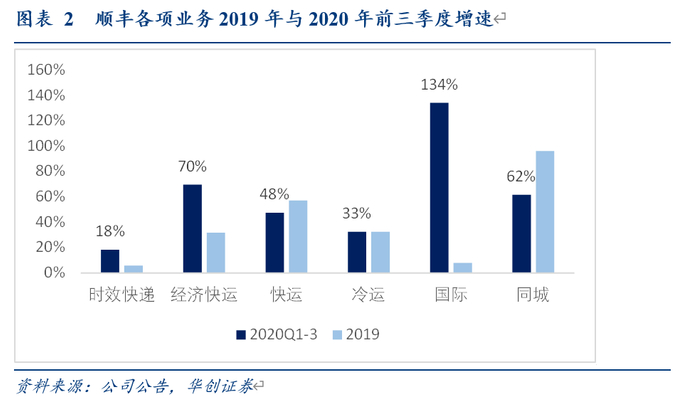 1、2020年市场接受了时效快递业务驱动因素脱钩GDP,而挂钩高端消费。2020年前三季度公司时效快递收入增速18.3%(2019年为5.9%)。