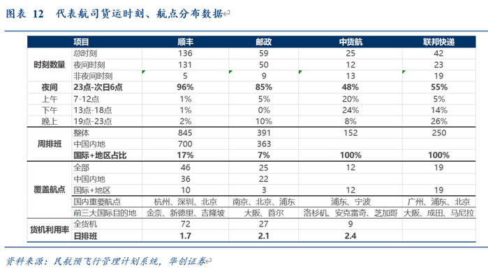 同时,我们认为假设顺丰货机机队白天承接国际航线,晚上依旧保持现有服务节奏,将明显提升利用率和周转,利于增收与降本。我们认为在相对理想的状态下,鄂州机场投产后,一旦顺丰获取较好的非夜间时刻(或从夜间时刻向前向后各延长部分时段),即可完成相对有效的国际-国内航线连接,由此可使得公司飞机利用率提升一倍成为可能。