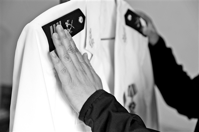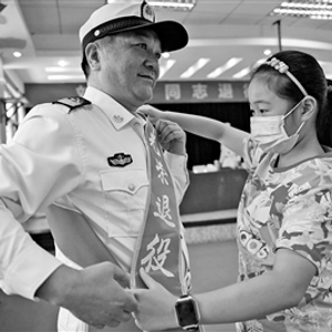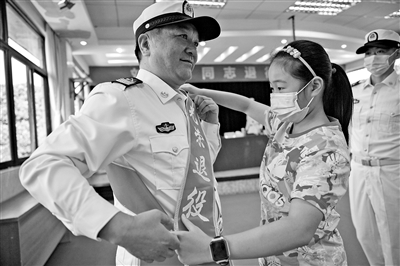 看着眼前一张张熟悉的面庞,刘达勇泪流满面。叶子为父亲认真整理“光荣退役”绶带。从父亲起伏的胸膛,女儿感受到了他内心的激动。