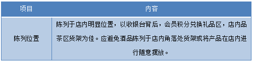 检查陈列排面、确保陈列物品,物料齐全、干净、整洁;针对前期陈列位置不理想的店面,可跟店面负责人沟通,将酒品陈列移到理想位置;