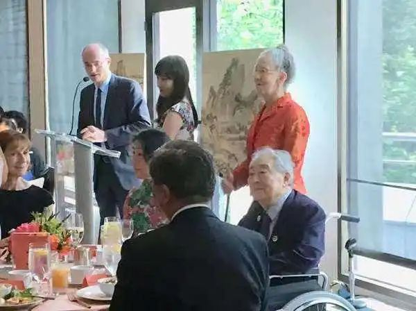 2018年,翁万戈在波士顿美术博物馆庆祝他的百岁生日,宣布捐赠《长江万里图》。翁万戈百岁生日宴,台上(左一)波士顿美术博物馆馆长马修·泰特鲍姆(Matthew Teitelbaum)、(中)中国艺术部研究及策展助理应非儿、(右)中国艺术部策展人白铃安(Nancy Berliner);坐席(右一)翁万戈先生、(右二)上海博物馆副馆长陈克伦、(右三)翁先生的女儿翁以思。