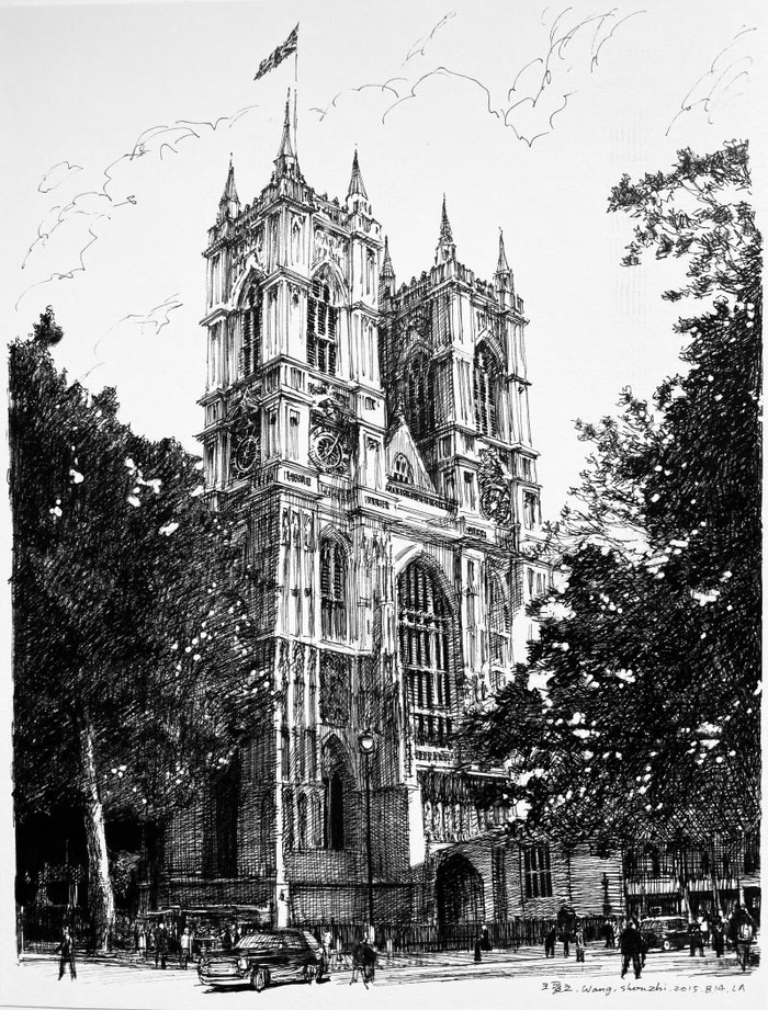 王受之先生的钢笔画。