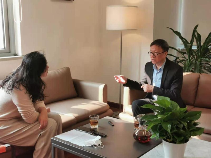 王受之先生正在接受采访。