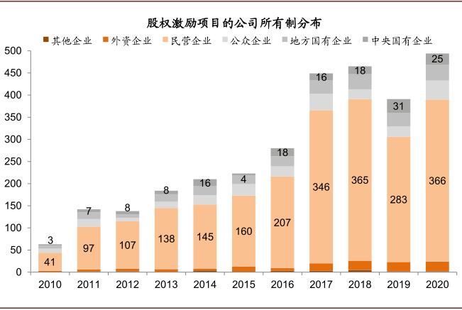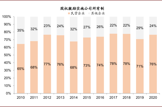 图表:…2020年民营企业发布的股权激励项目占所有项目的74%