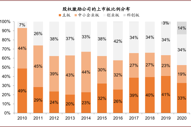 就股权激励制度本身而言,近年政策层面对股权激励总量、对象、公司资质等的要求也在随着注册制的推进不断放宽,近年主板和中小板也有望在股权激励规则上参考科创板和创业板的经验。
