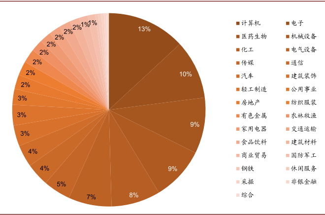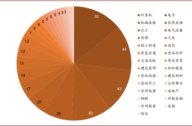 图表:2010年以来,实行股权激励的公司多分布于计算机、电子、医药生物和机械设备等板块