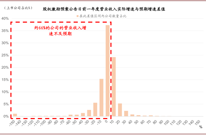 图表:约66%的上市公司在股权激励公告日前一年度的营业收入增速不及市场预期