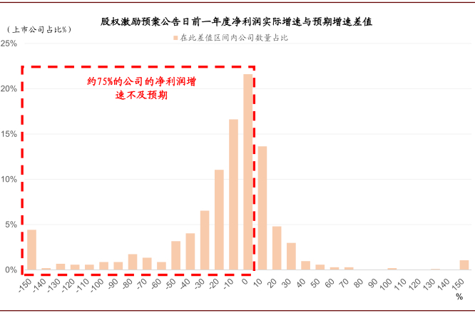 图表:约75%的上市公司在股权激励公告日前一年度的净利润增速不及市场预期