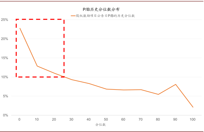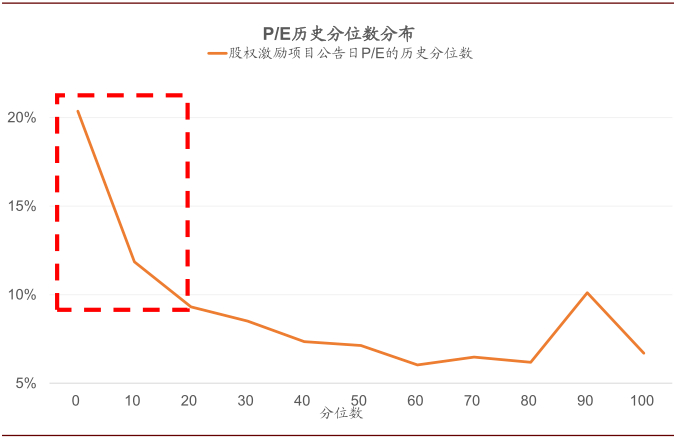图表:42%的公司发布股权激励的时刻的P/E估值处于其上市以来的P/E20%历史低分位