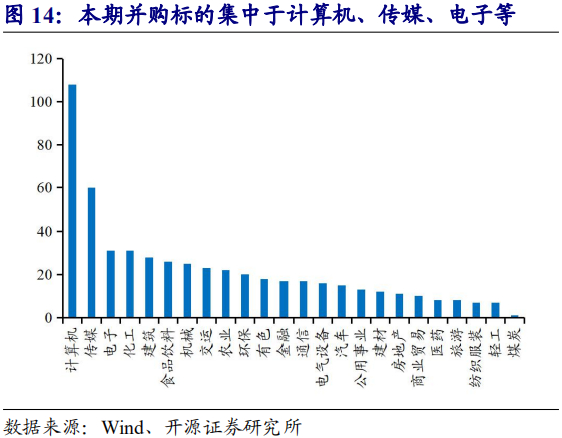 3.1、本期并购热点为计算机、传媒、电子等行业
