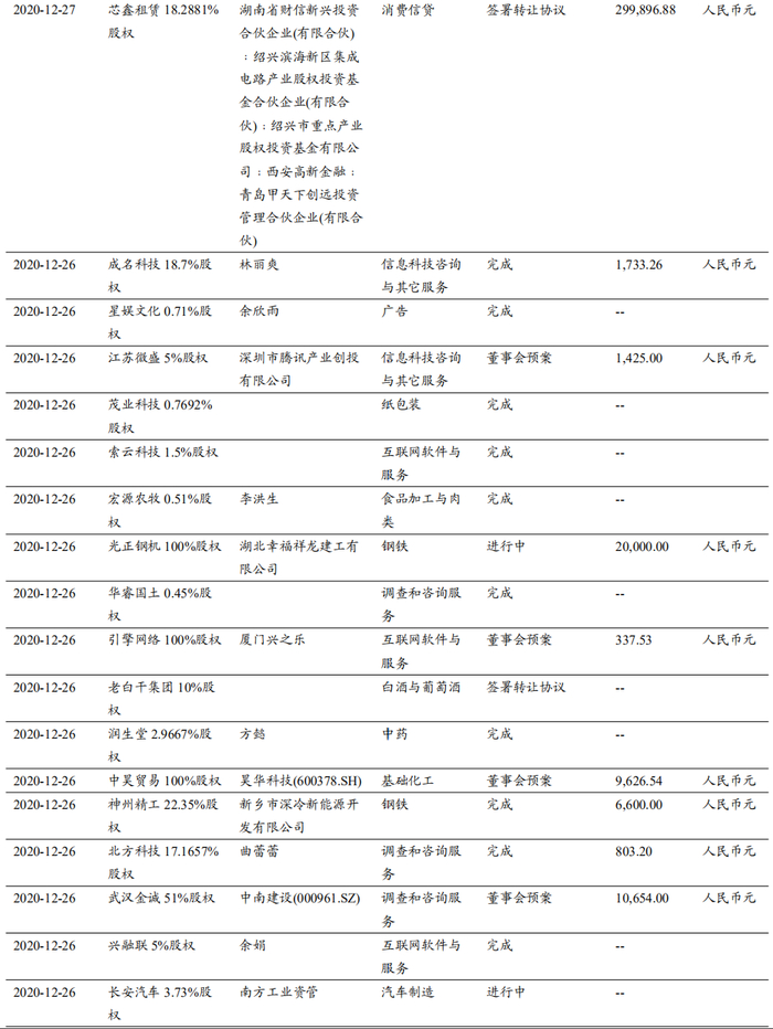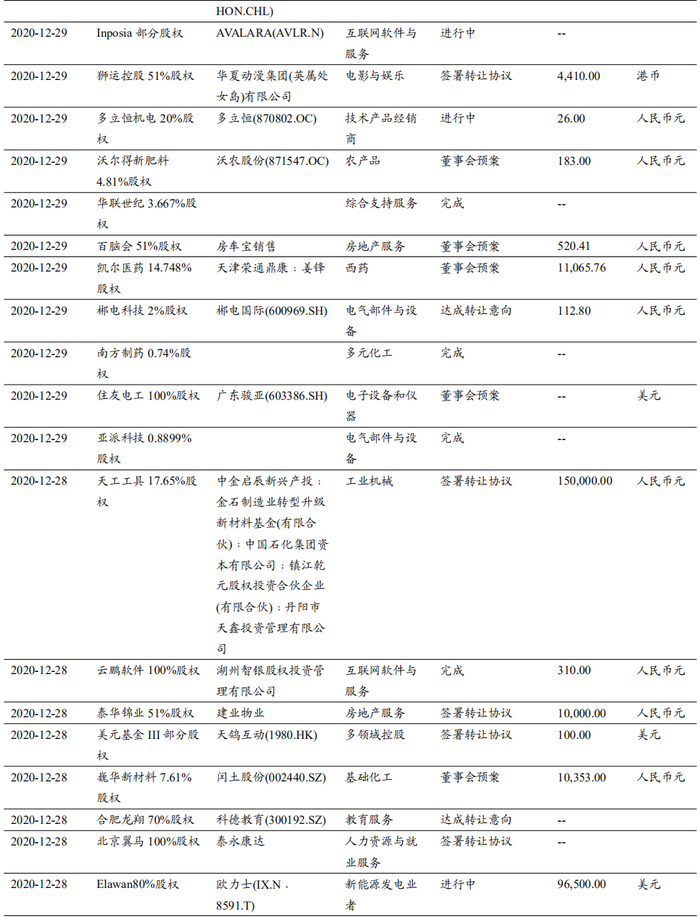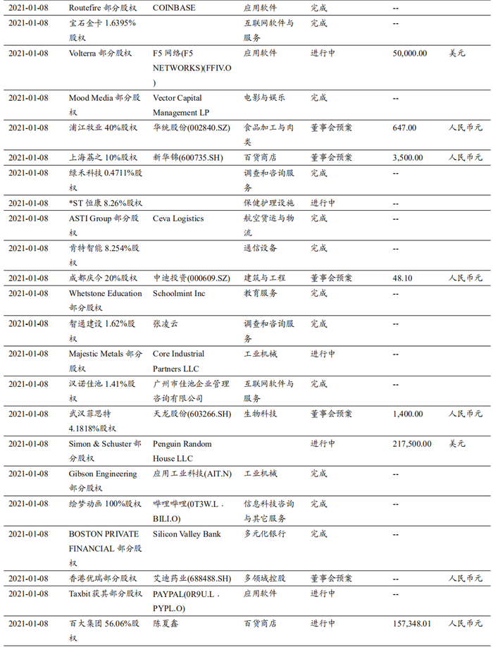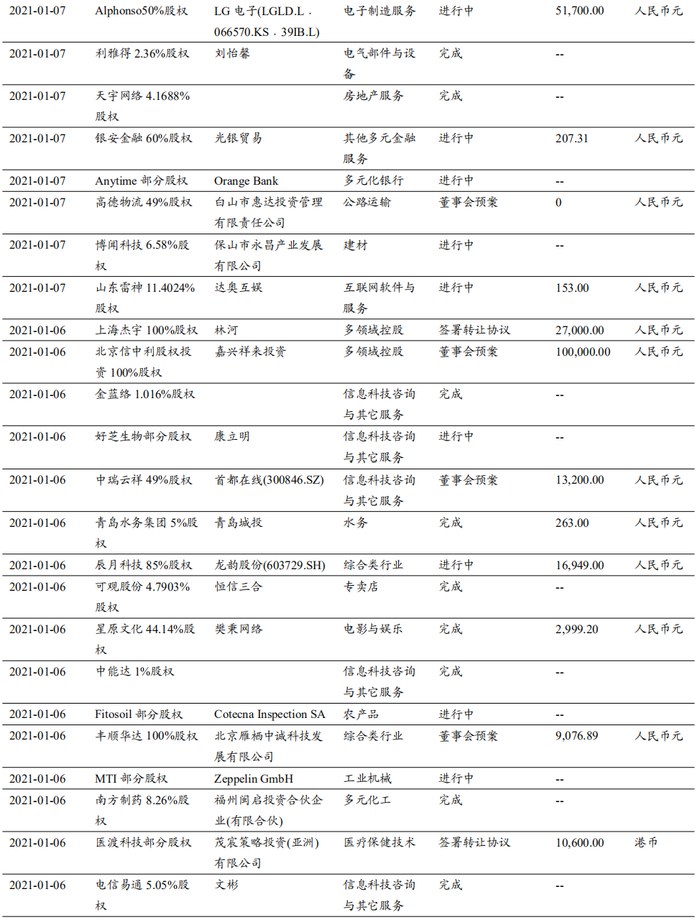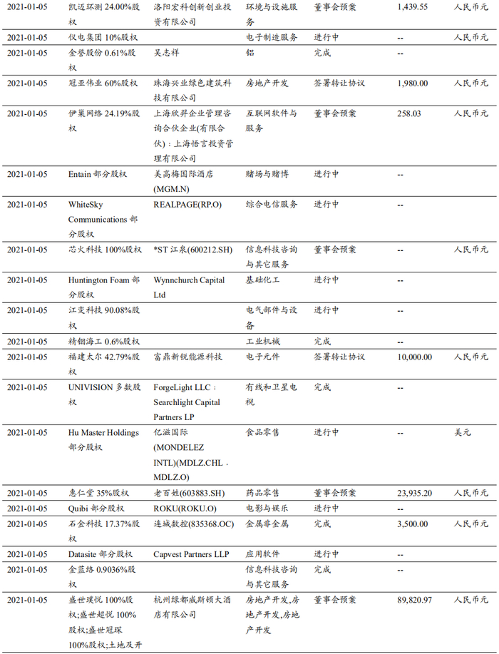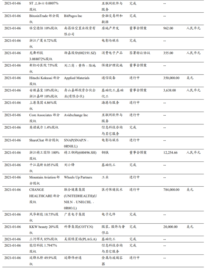 本期(2020.12.26-2021.01.08)重大定增并购案例: