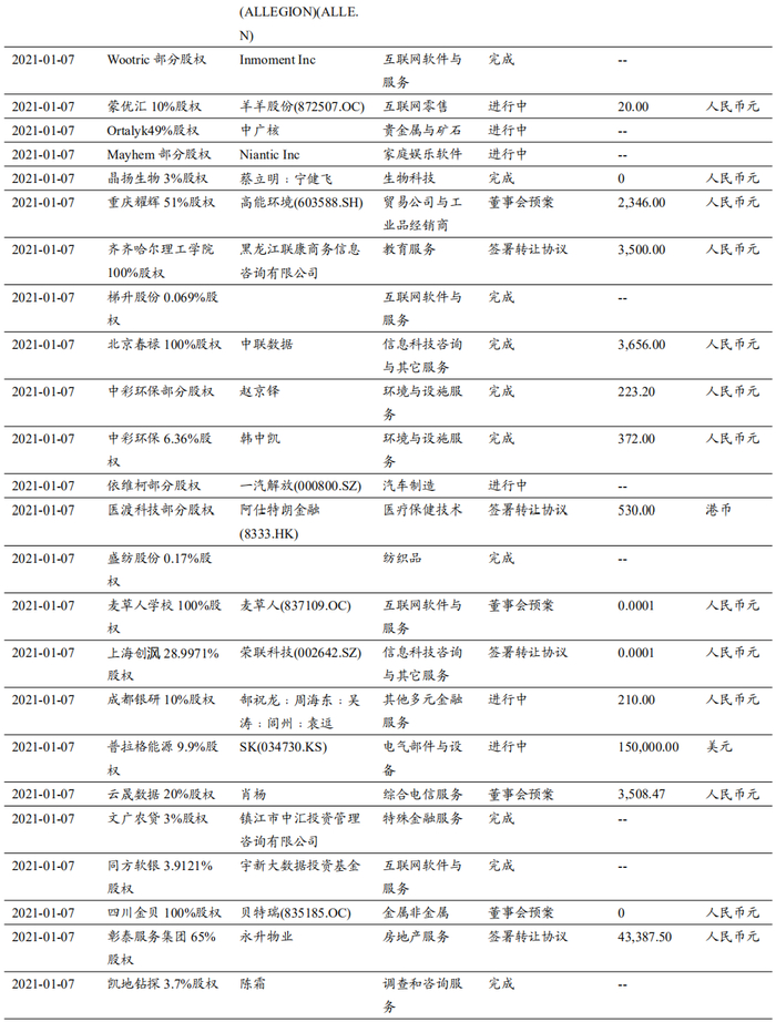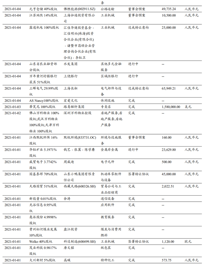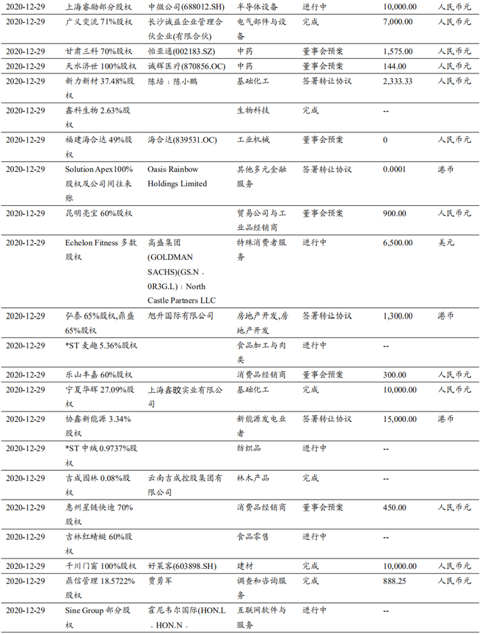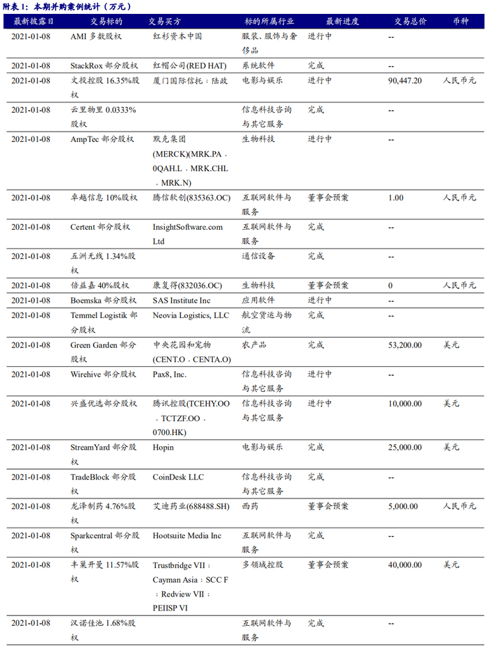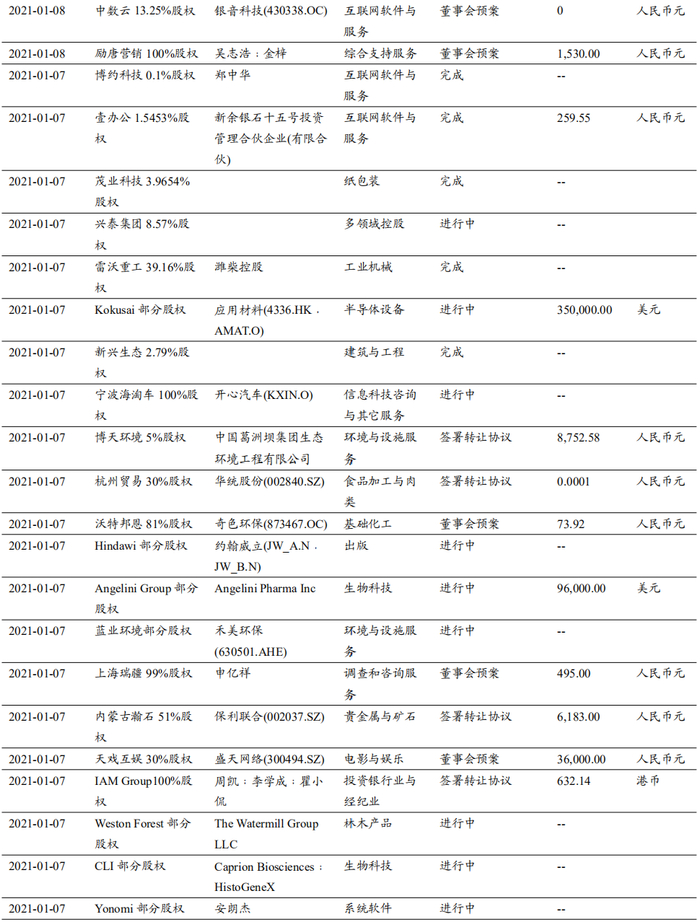 本期(2020.12.26-2021.01.08)重大定增并购案例: