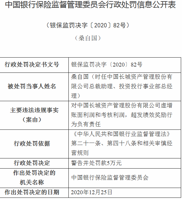 原标题:长城资产16宗违法遭罚4690万 总裁助理桑自国已被双开